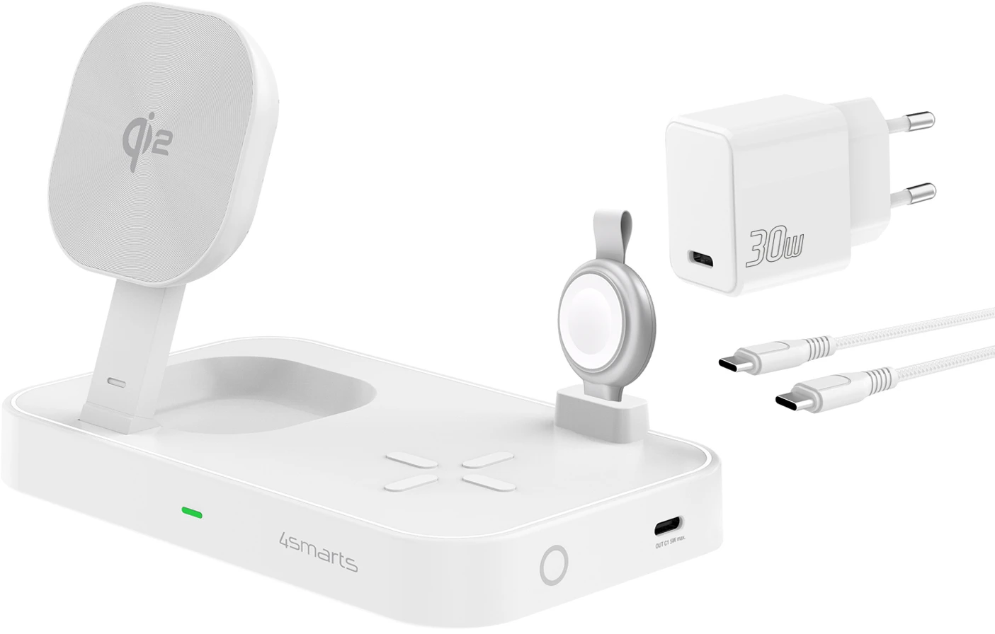 4Smarts Qi2 Ladestation Trident mit MFi Fast Charger für Apple Watch Weiß