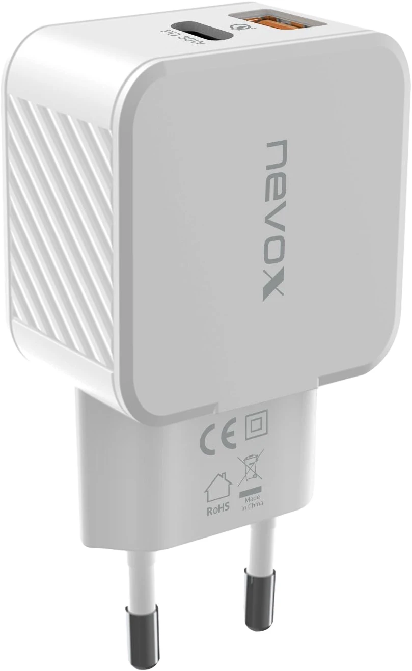 Nevox USB-C PD + QC 3.0/PPS Ladegerät 30 Watt Weiß